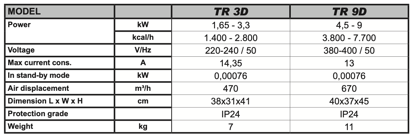 Elektrické závěsné topidlo TR9D o výkonu 9 kW / 400V.